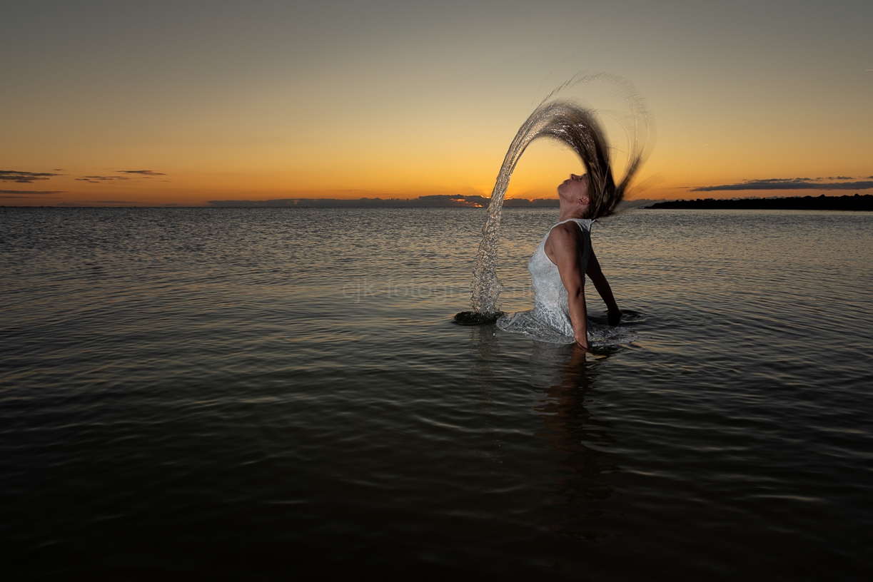 Dit stond al tijdje op mijn bucketlist, maar het kwam er maar niet van. Ik wilde een model bij een mooie sunset fotograferen en hierbij oefenen om een mooie hair_splash te maken. Ik vond Gerie bereid om dit te gaan doen. Echter wanneer heb beide tijd EN wanneer heb je de mooiste sunsets. Ik vind de mooiste in het najaar en vroege voorjaar. Als de temperatuur wat lager is en minder stof in de lucht is. Het nadeel is natuurlijk dat het water ook wat kouder is.