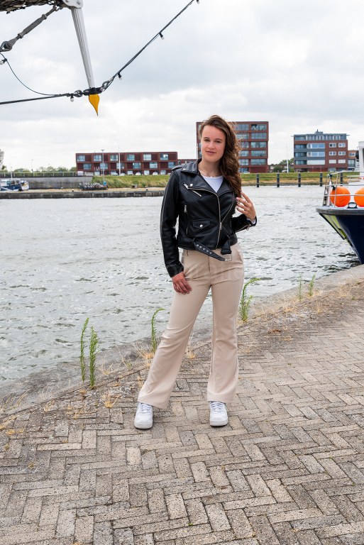 16 juli 2023. Na lang contact eindelijk schoolvakantie en tijd om te shooten. Moeder had dochter Dewi meegenomen naar Bataviastad. Hoewel de wind ons aardig dwars zat hebben we een leuke shoot gehad. Het was wat onwennig tussen de mensen, maar deze teenager liet zien waar ze staat.